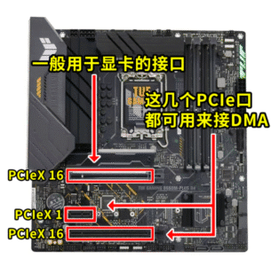 DMA就是一个小电路板,插到游戏机主板的Pcie插槽上,通过数据线连接到副机,DMA通过Pcie插槽获取到游戏内的数据 然后通过数据线传到副机上,然后在副机上开软件 分析数据从而实现各种功能(包括但不限于透视自瞄)↓